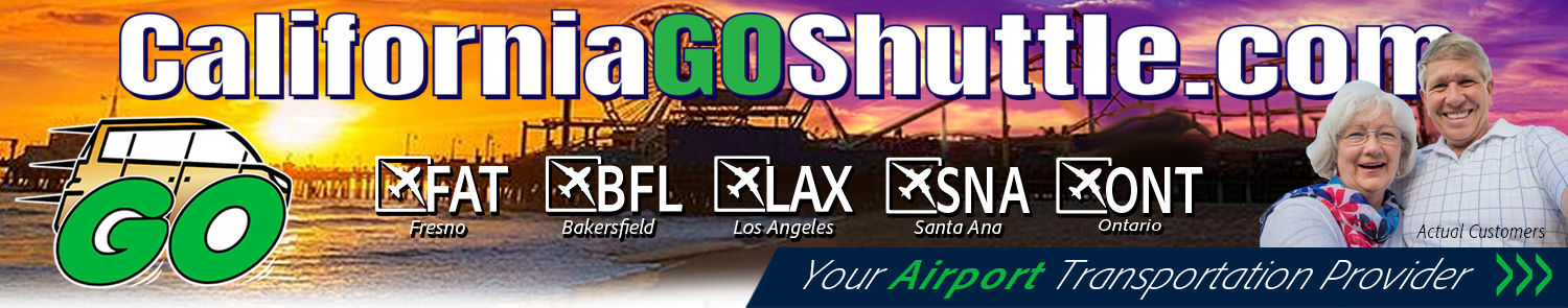 We are a pre-arranged pre-paid door-to-door airport transportation service serving throughout Southern California, including Bakersfield (BFL), Carlsbad (CLD), Fresno (FAT), Los Angeles (LAX), Long Beach (LGB), Ontario (ONT), Santa Ana-John Wayne (SNA), and San Diego (SAN) airports. We operate 24 hours a day, 7 days a week. Our vehicles are constantly cleaned, mechanically scheduled, properly insured, and our drivers are certified with the State (TCP: 42538-P) to provide you a less stressful and relaxing way to travel. Come join us. We look forward to meeting you and getting you to where you want to GO!